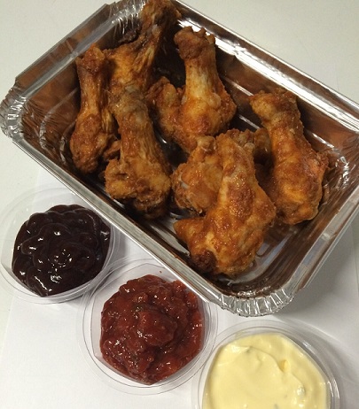 Gekruide drumsticks, 6 a 7 stuks. Inclusief 1 van de sauzen: