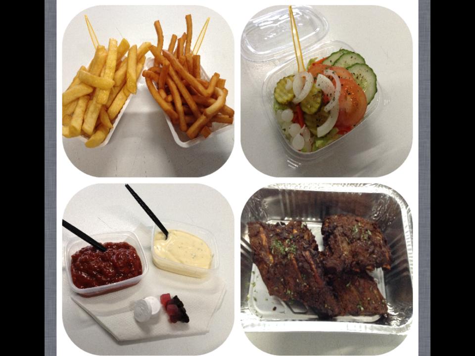 Spare-ribs Menu zoet (Incl saus, portie patat en salade)